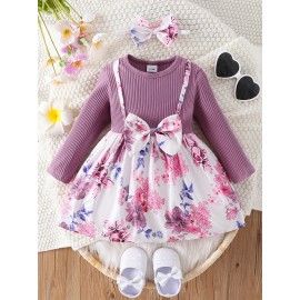 Baby Girl Christmas Cute Bow Snowflake Print Dress+two Piece Headscarf Set