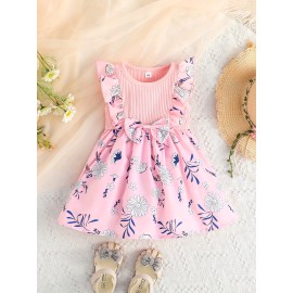 Baby Girl's Casual Floral Print Sleeveless Belted Dress Kid's Clothes