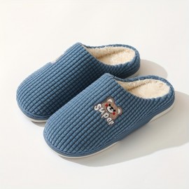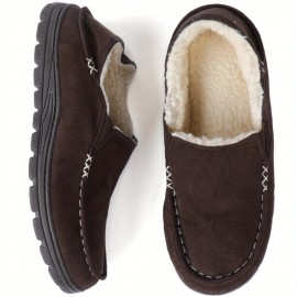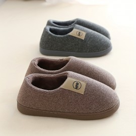 Men's Casual Argyle Pattern Warm Plush Lining Sli On House Shoes, Unisex Comfortable Non-slip Indoor Shoes