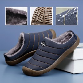 Big Size Men's Soft Plush Cozy House Slippers, Lightweight Breathable Anti-skid Slip-on Shoes With Fuzzy Lining For Indoor Walking, Autumn And Winter