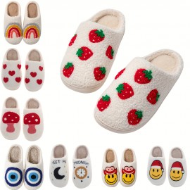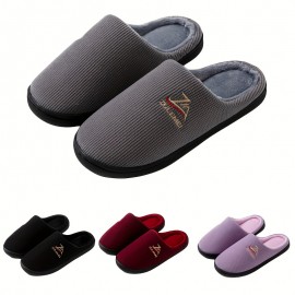 Knit Design Soft Plush Cozy House Slippers Anti-skid Slip-on Shoes Indoor For Men Winter Shoes