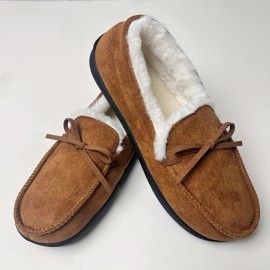Men's Casual Moccasin Loafer Slippers, Breathable Lightweight Slip On Shoes With Fuzzy Lining For Indoor Walking