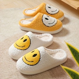 Smiling Face Design Soft Plush Cozy House Slippers Anti-skid Slip-on Shoes Indoor For Men And Women Winter Shoes