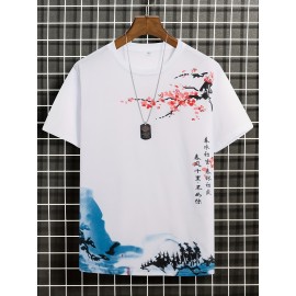 Chrsitian Themed Letter Pattern Men's Trendy Long Sleeve Crew Neck T-shirt, Spring Fall