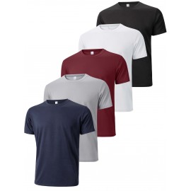 Men's Solid Creative Loose Top, Casual Slightly Stretch Short Sleeve Crew Neck Running Fitness Sports T-shirt, Men's Clothes For Summer Outdoor