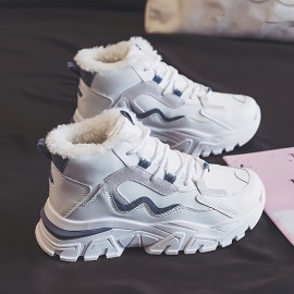 Women's Chunky Ankle Boots, Colorblock Plush Lined High Top Outdoor Sneakers, Winter Warm Lace Up Snow Boots