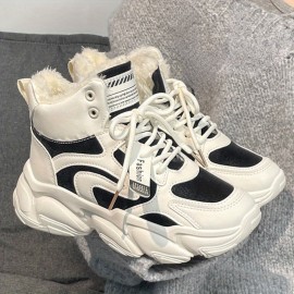 Women's Chunky Heel Combat Boots, Fashion Stretch Fabric Sided Boots, Solid Color Ankle Boots
