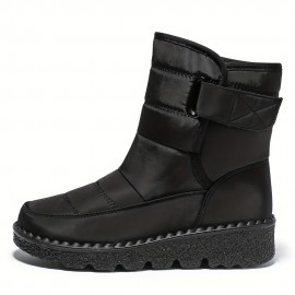 Women's Comfy Flat Faux Leather Boots, Stylish Lace Up Hook & Loop Boots, Fashion Plush Lined Boots