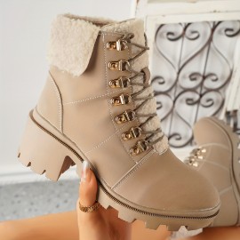 Women's Flat Short Boots, Casual Lace Up Plush Lined Boots, Women's Comfortable Ankle Boots