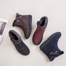 Women's Fleece Lined Short Boots, Winter Warm Lace Up Flat Snow Boots, Solid Color Outdoor Thermal Boots