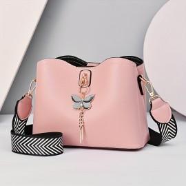 Small Color Contrast Handbag, Wide Strap Crossbody Bag, Trendy Multi Layer Purses For Women