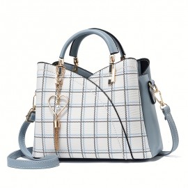 Women's Simple Colorblock Tote Bag, Classic Elegant Shoulder Bag, Trendy Satchel Bag With Tassel Pendant