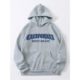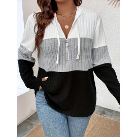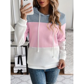 Color Block Letter Print Hoodies, Casual Drawstring Long Sleeve Sweatshirt, Women's Clothing