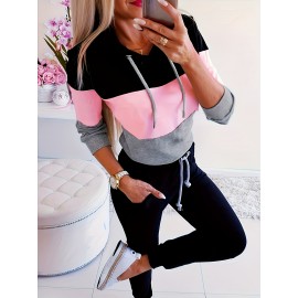 Color Block Zipper Hoodie, Casual Long Sleeve Drawstring Hoodies Sweatshirt, Women's Clothing