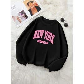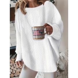 Cute Cat Print Crew Neck Sweatshirt, Casual Long Sleeve Loose Sweatshirt, Women's Clothing