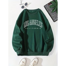 New York Print Loose Sweatshirt, Casual Long Sleeve Crew Neck Sweatshirt, Women's Clothing